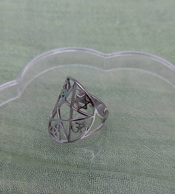Le Nœud de sorcière , le YinYang, la Croix, le OM, et l'étoile de David