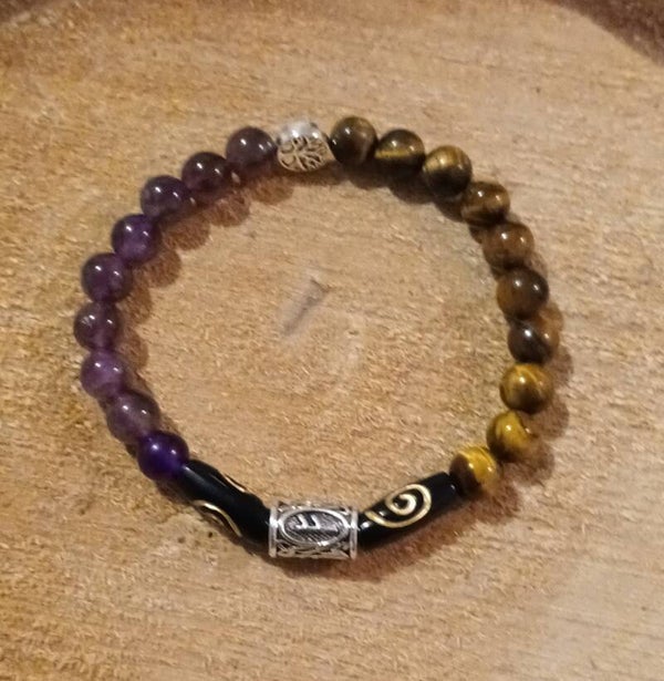 Bracelet richesse & prospérité rune fehu en améthyste & Oeil de tigre