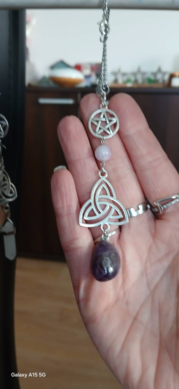 Talisman protection en améthyste et lepidolite à suspendre