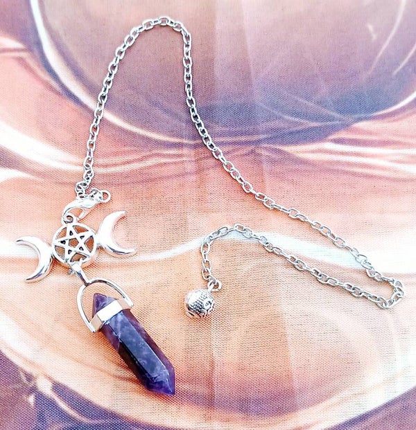 Pendule en améthyste horner de sa triple lune Symbole de connexion spirituelle.