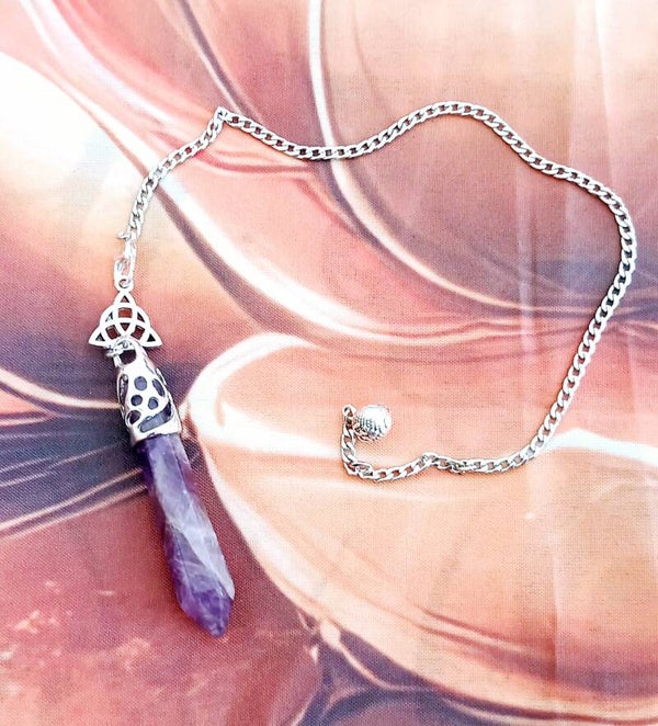 Pendule en améthyste et son nœud de sorcière Symbole de protection et d'intuition spirituelle, le pendule en améthyste est un outil puissant pour ceux qui cherchent à approfondir leur pratique ésotérique.