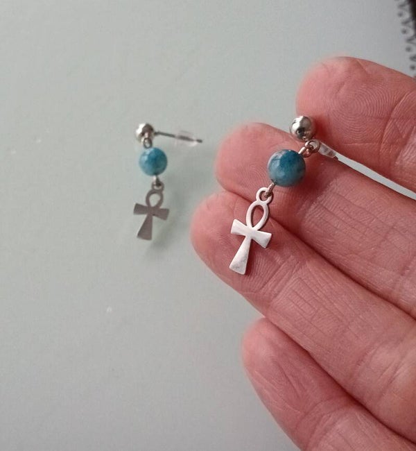 ✨️Boucles d’oreilles Croix de Ankh – Larimar