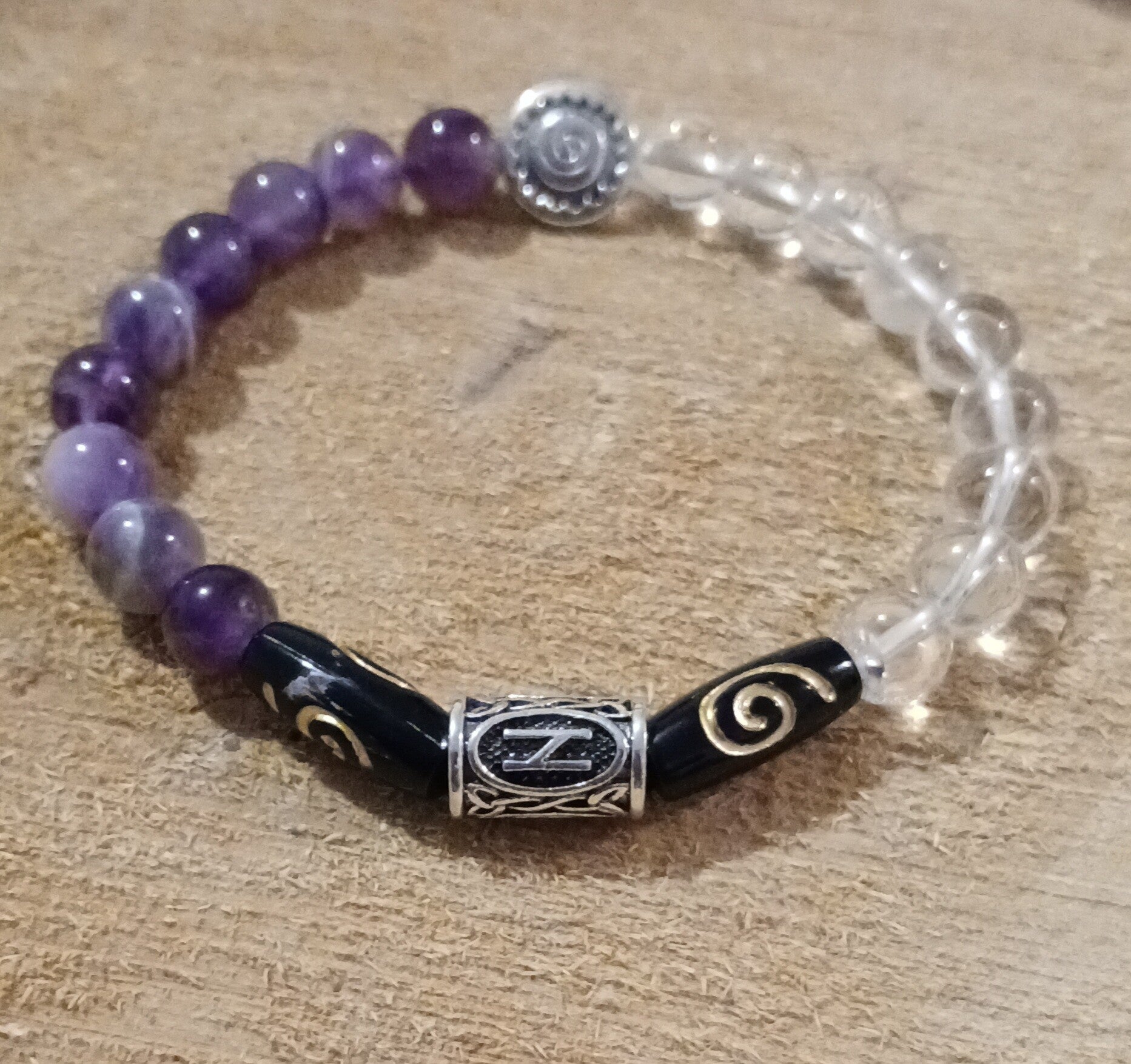 Bracelet rune Hagalaz en améthyste & cristal de roche