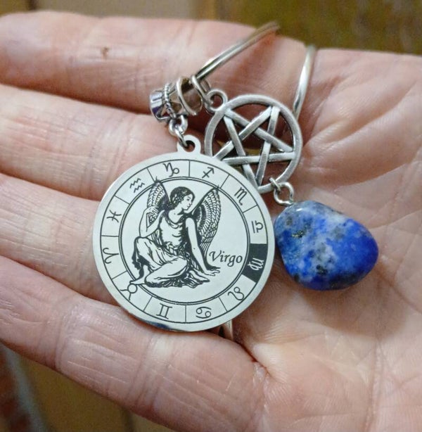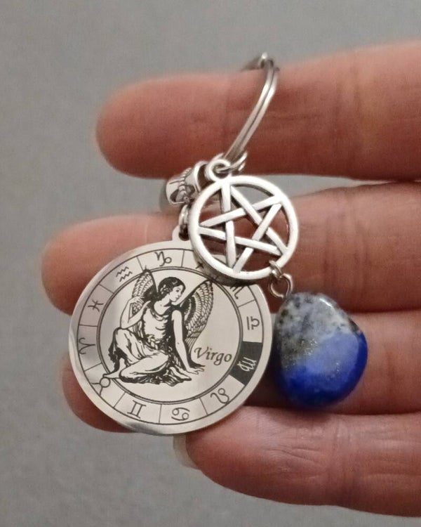 ✨️ Porte-clés Signe Astrologique Vierge – Lapis-lazuli & Pentagramme