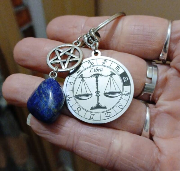 ✨️ Porte-clés Signe Astrologique Balance – Lapis-lazuli & Nœud de Sorcière