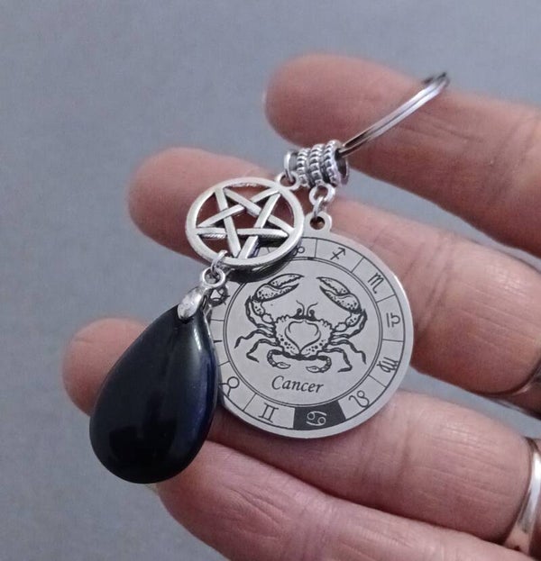 ✨️ Porte-clés Signe Astrologique Cancer – Onyx & Nœud de Sorcière